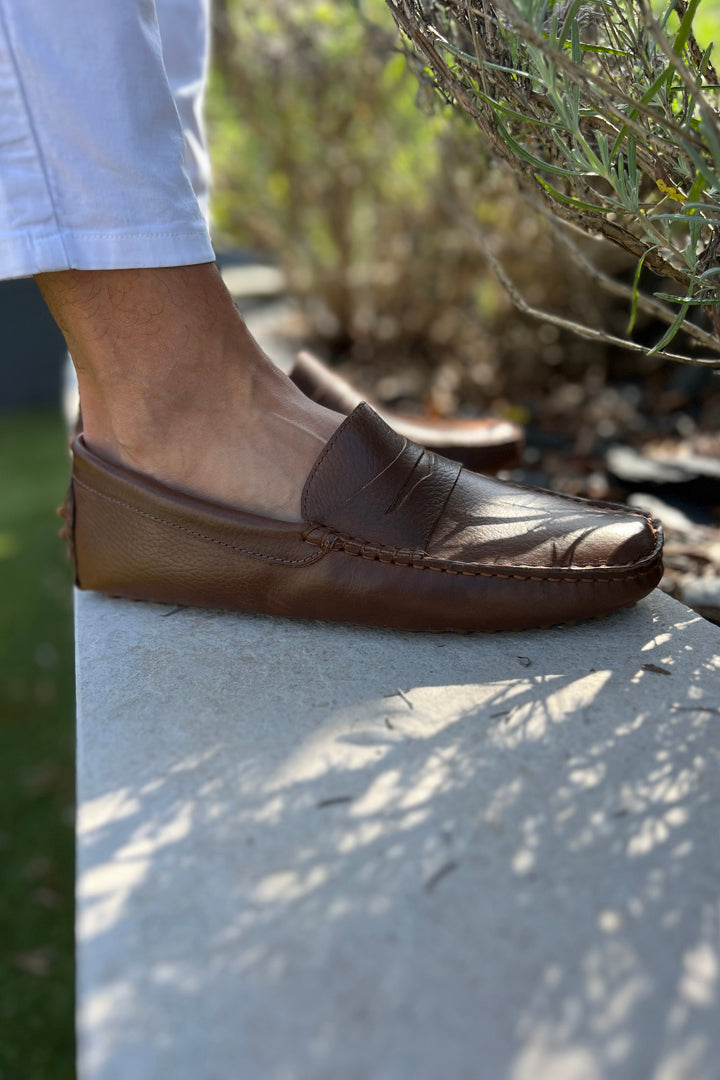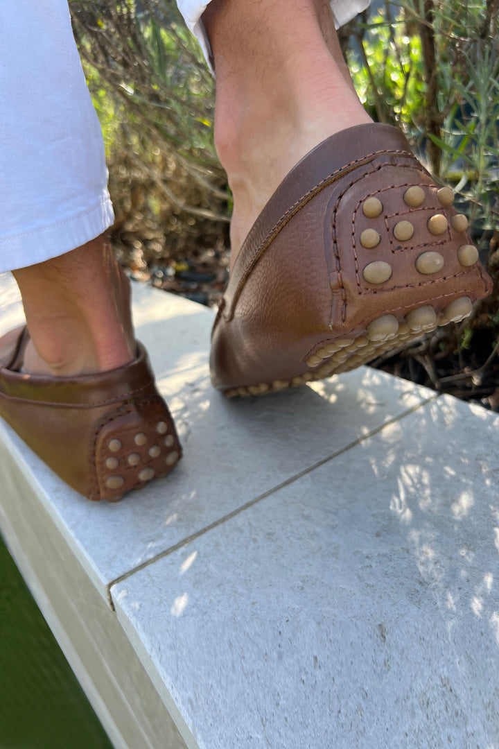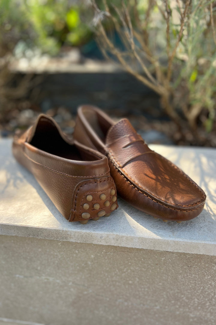 Mocassins homme / Cuir lisse ou grainé provenant d’Italie / Doublure en cuir / Semelles à picots en caoutchouc / désigné en France / fabriqué au Portugal / Fait main / fournit avec son pochon de voyage