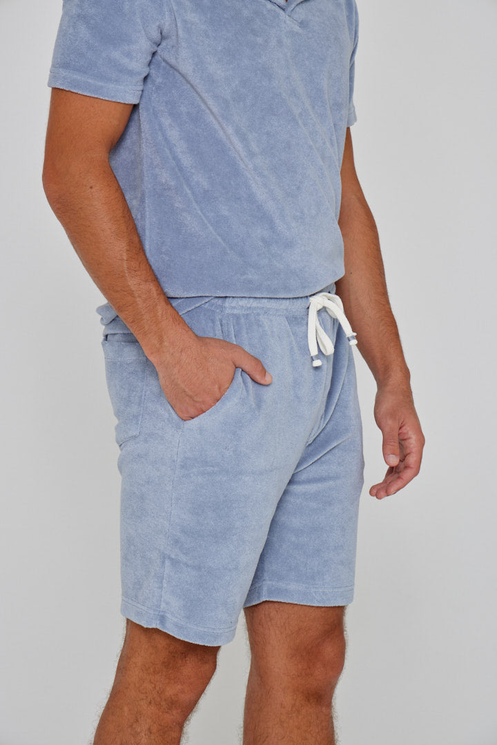 Indispensable du vestiaire estival, le short en éponge, matière ultra-douce et absorbante, offre un confort ultime tout au long de la journée.