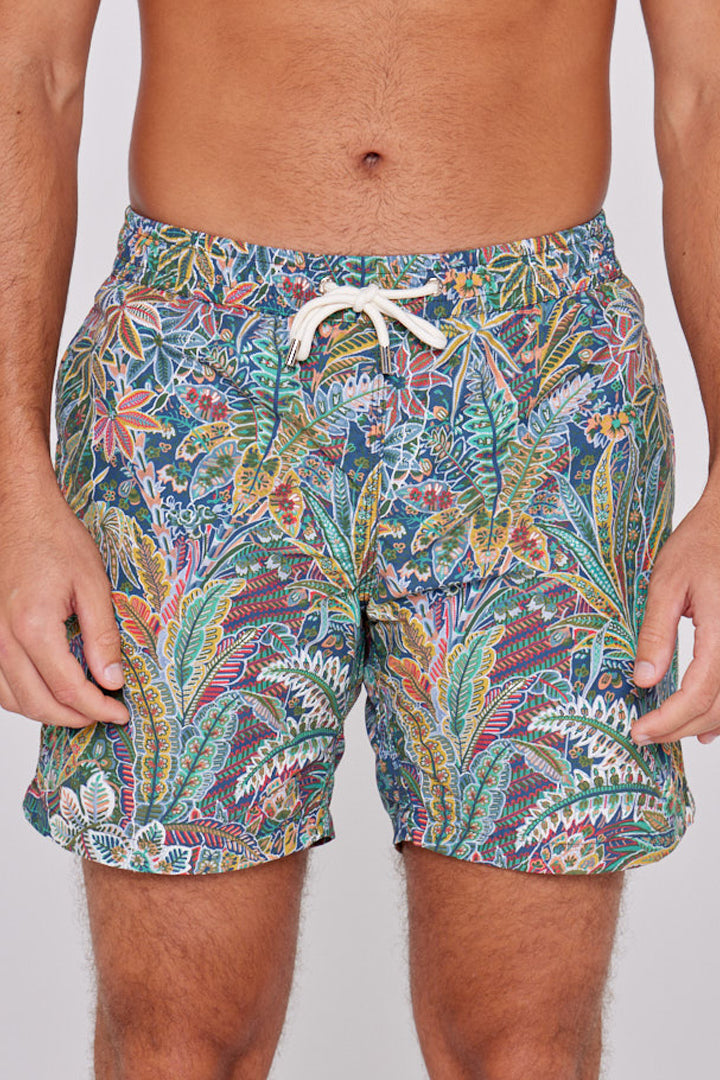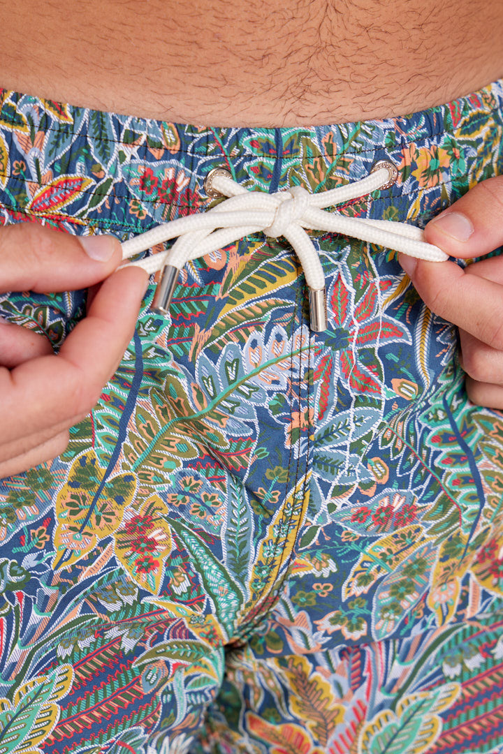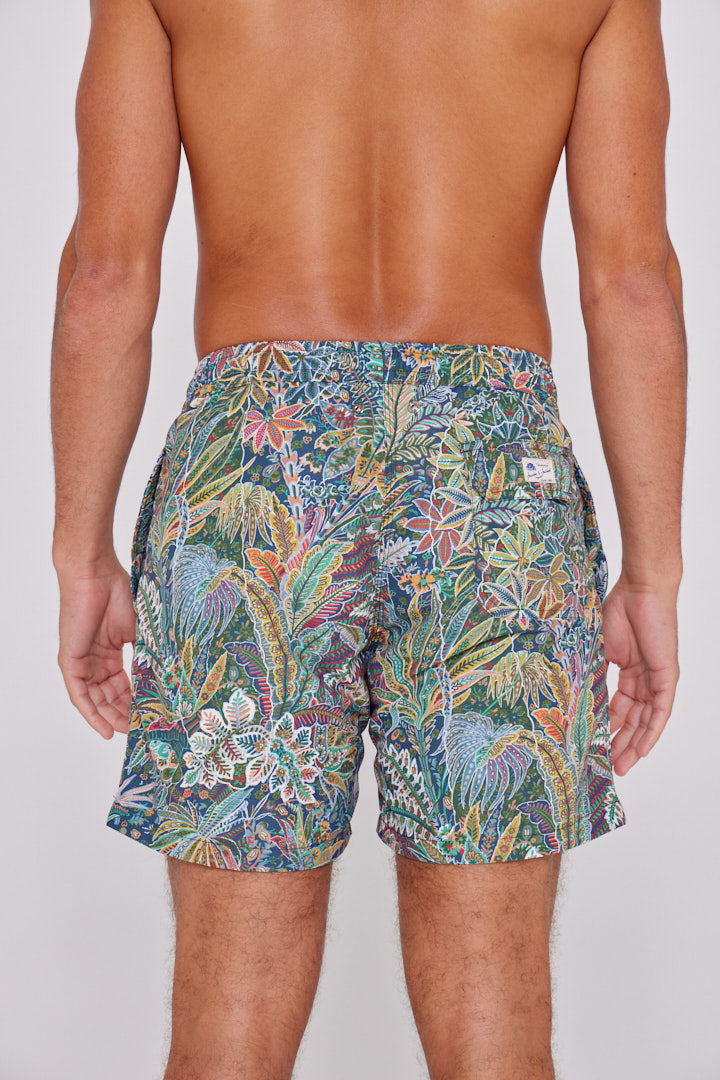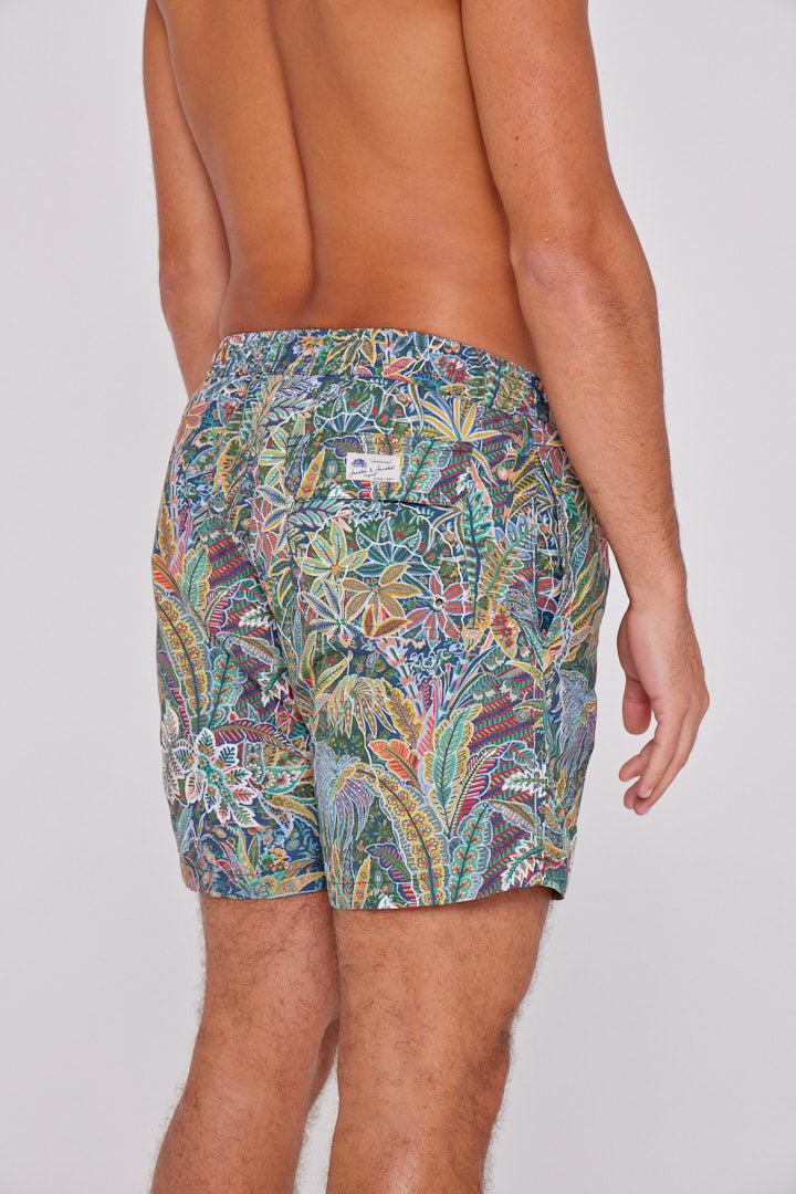 Le short de bain IPANEMA se distingue par ses imprimés colorés et raffinés, réalisés dans le tissu iconique Liberty of London. Léger, élégant et agréable à porter, c’est la pièce idéale pour ajouter une touche de style à vos journées d’été.