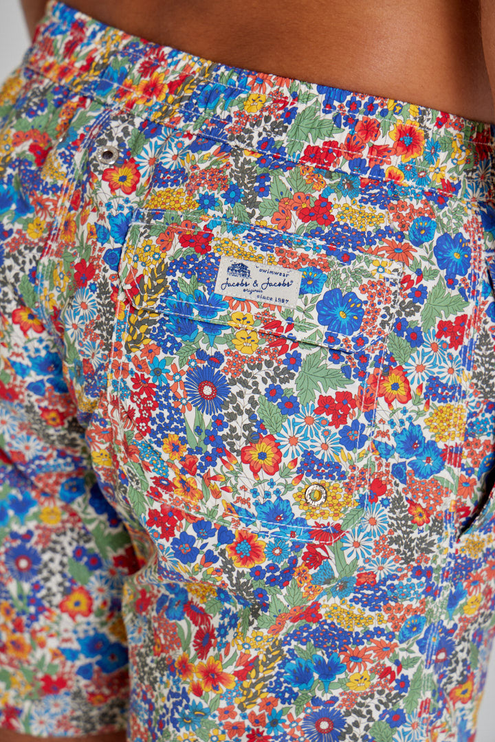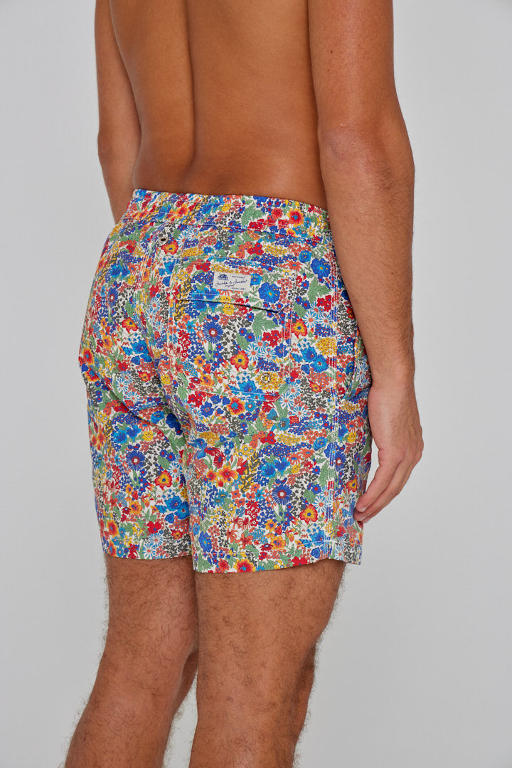 Le short de bain IPANEMA se distingue par ses imprimés colorés et raffinés, réalisés dans le tissu iconique Liberty of London. Léger, élégant et agréable à porter, c’est la pièce idéale pour ajouter une touche de style à vos journées d’été.