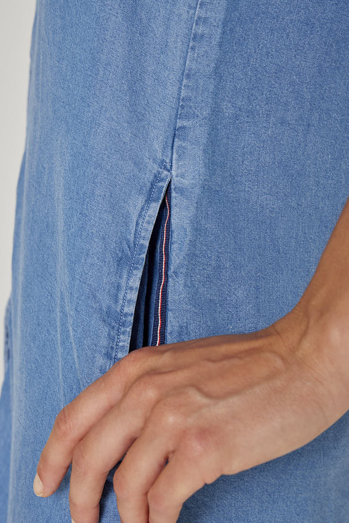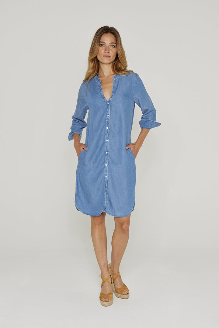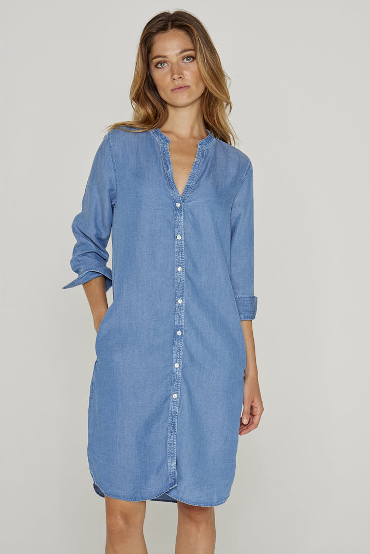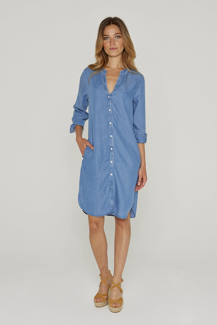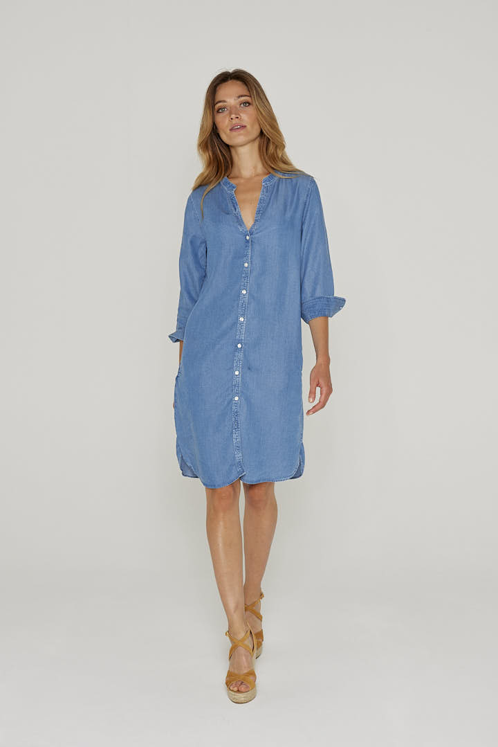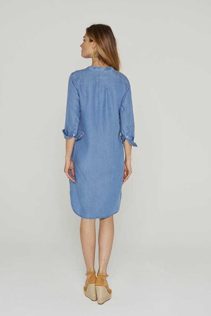 Robe femme / 100% Tencel / Manches 3/4 / Coupe droite / Col mao / Poches latérales / Lavable en machine / Designé en France / Fabriqué au Portugal