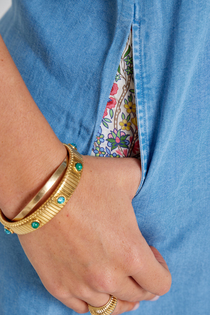 Tunique femme / 100% Tencel / Coupe ample / Manches 3/4 / 1 poche poitrine / Lavable en machine / designé en France / fabriqué au Portugal