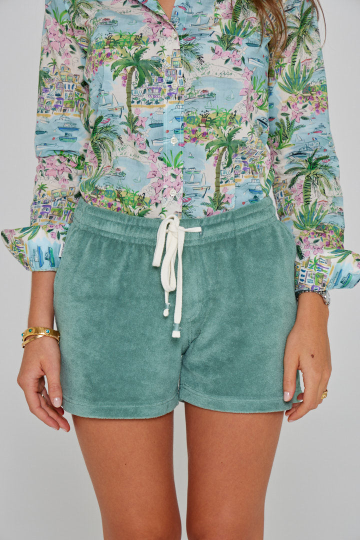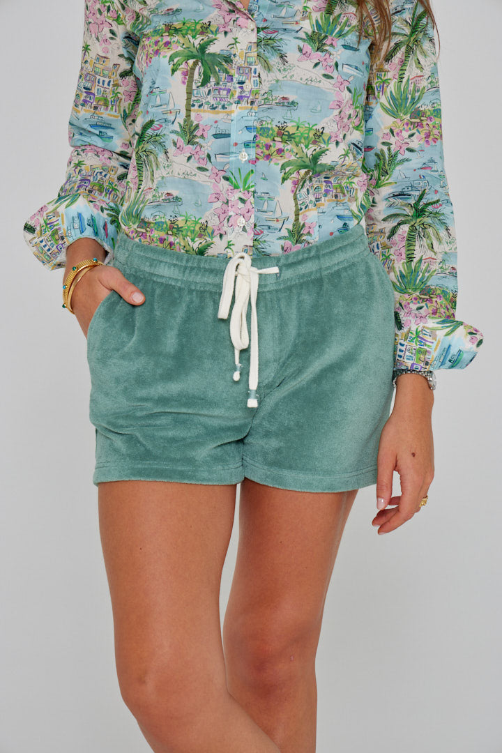 Indispensable du vestiaire estival, le short en éponge , matière ultra-douce et absorbante, offre un confort ultime tout au long de la journée.