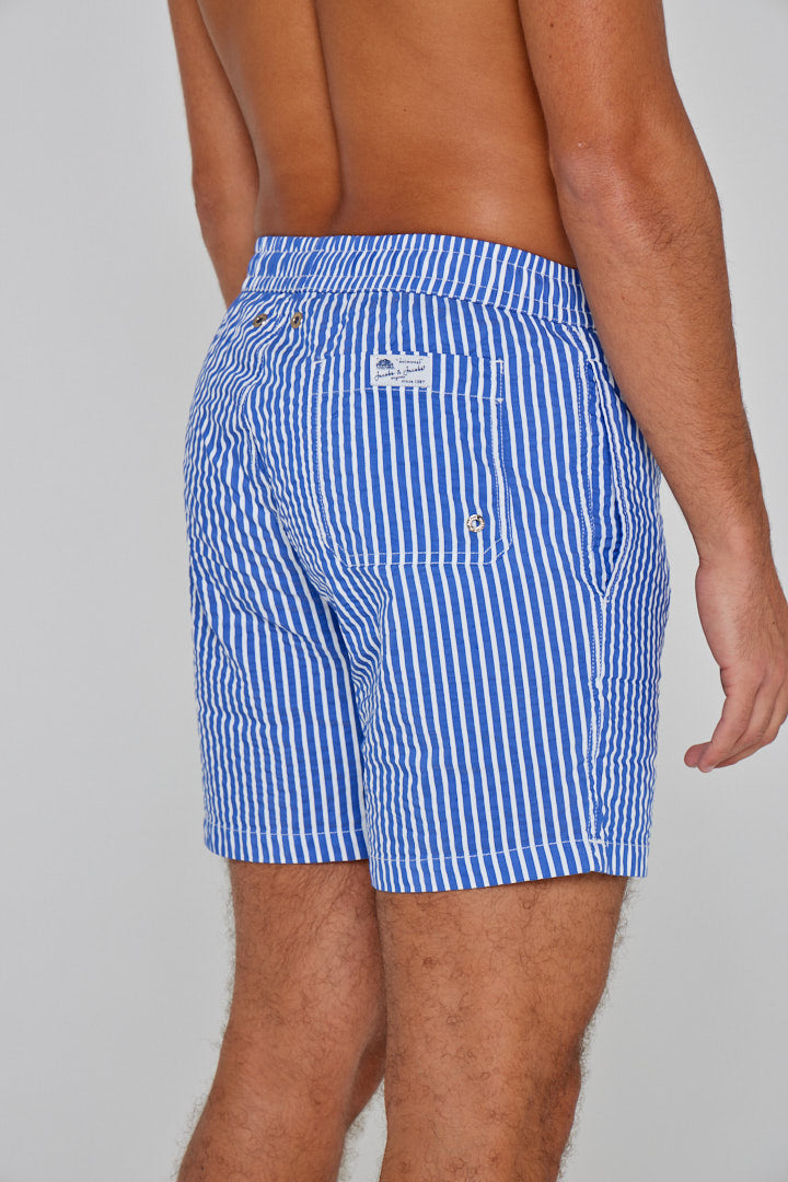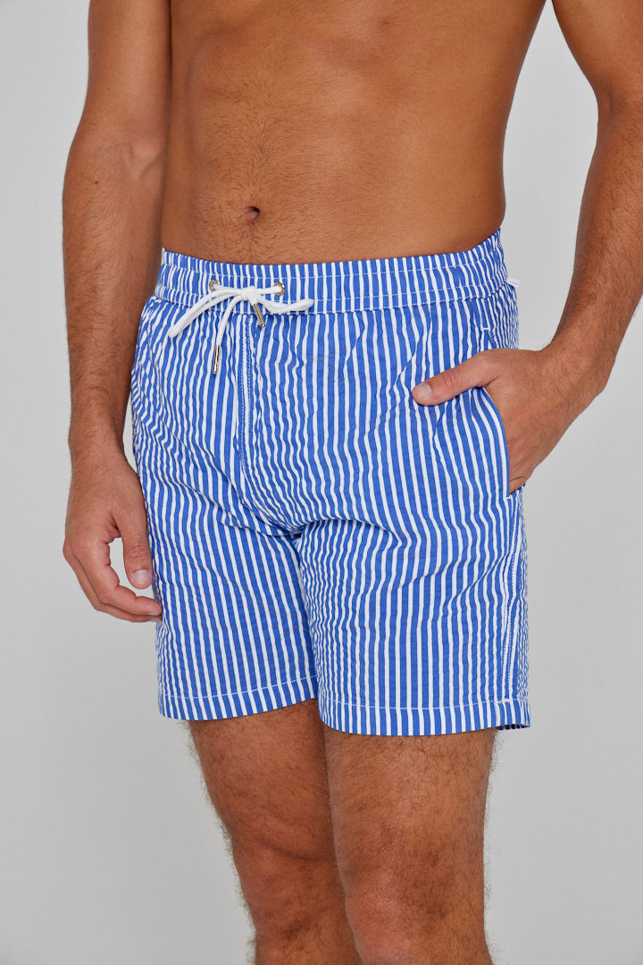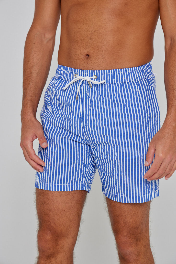 Le short de bain RICHMOND est un essentiel élégant. Confectionné dans un tissu rayé ultra léger, il séduit par sa sobriété, sa coupe moderne et ses finitions soignées. Un modèle intemporel, facile à porter au quotidien, été après été.