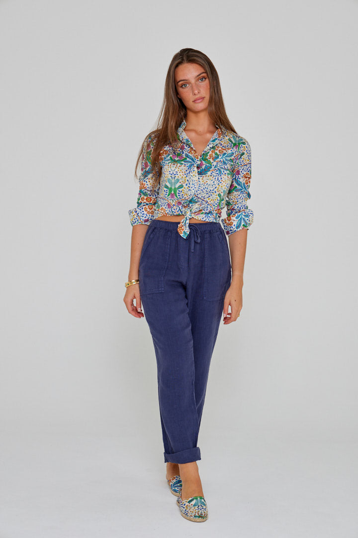 Élégant, léger et respirant, ce pantalon 100 % lin est un essentiel de la garde-robe estivale. Sa coupe fluide et décontractée offre un confort optimal au quotidien.